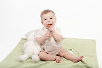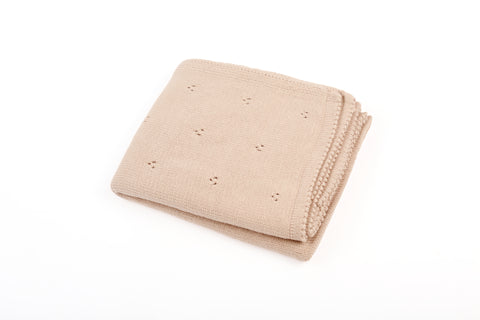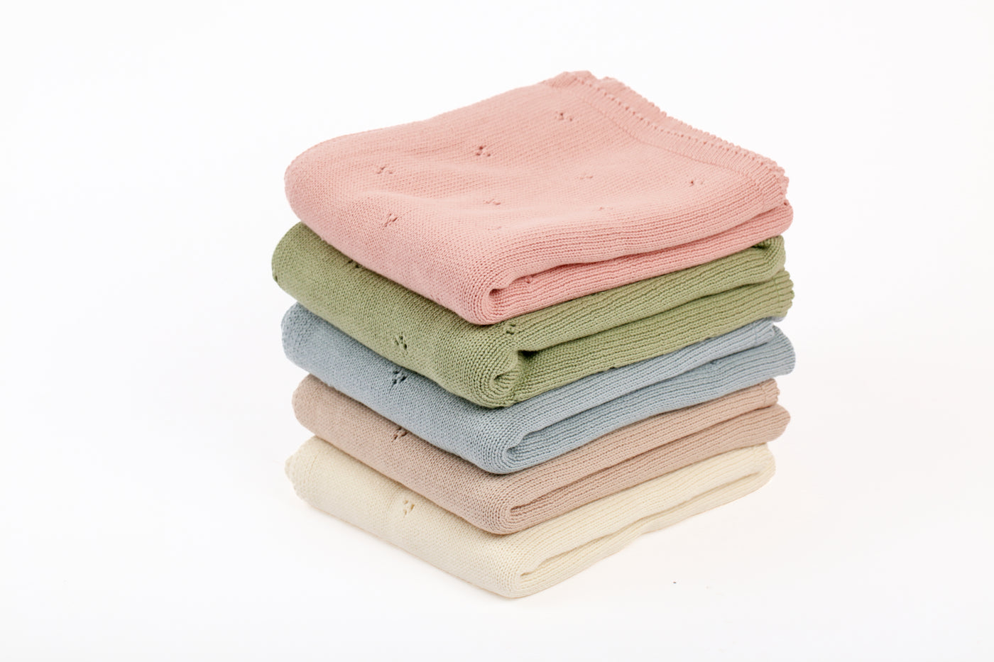 Colores Blush pink, Olive, Baby blue, Cream y Camel. Manta tejida 100% de algodón tacto suave con diseño. Lavar en ciclo delicado y dejar secar, no usar secadora.