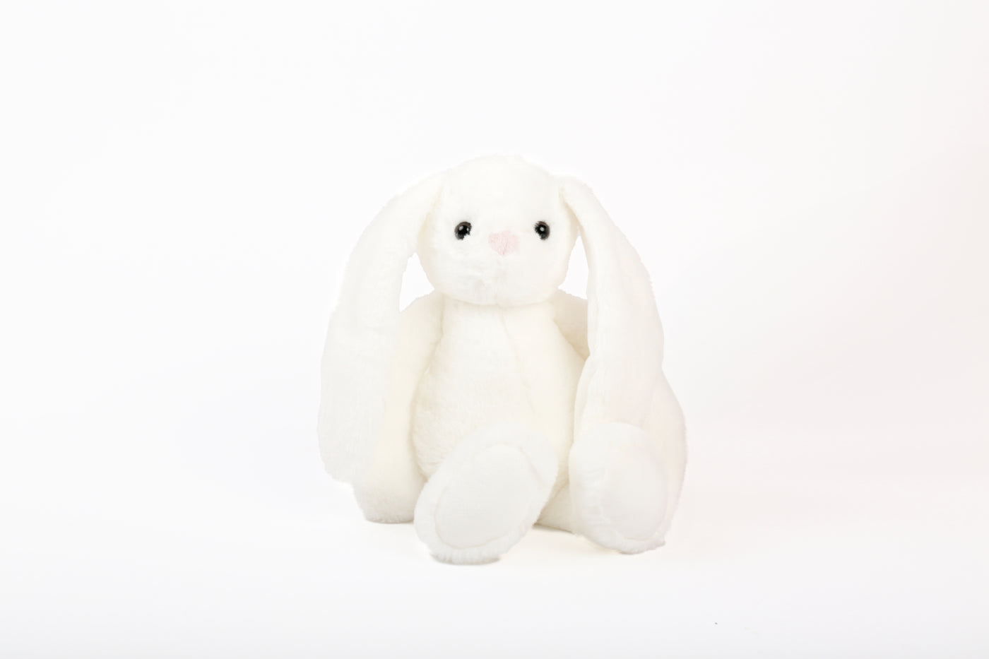 Conejo de peluche suave y esponjoso. Hecho de poliester. Lavar a mano y dejar secar.